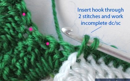 Diğer renkle 5 adet dolgu ve 5 adet göz şeklinde 1 sıra gidin..