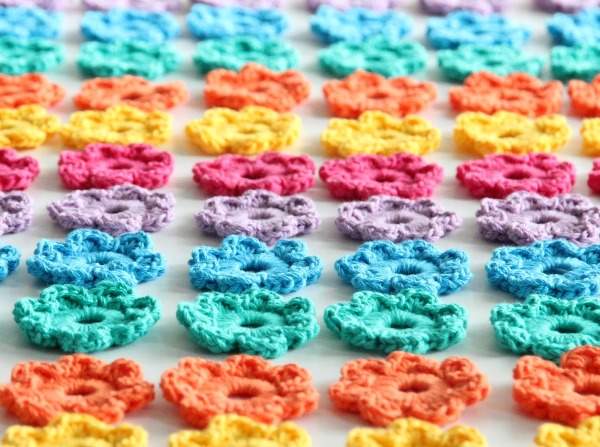 Tüm iplerinizle bir çok rengarenk çiçek motifi oluşturun..