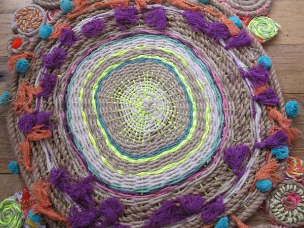 Daha sonra bu ip aralarından çeşitli renk ve boyutlardaki ipleri geçirerek bir yuvarlak oluşturalım..
