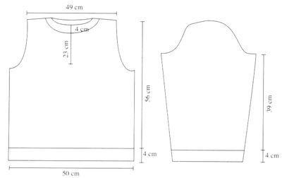 ARKA: Yüzonbeş ilmek başlanır. dört santimetre bir+bir lastik örülür. Lastik üzerinde modelli örgü ile devam edilir. Beden boyu kırk santimetre’de kol evi için üç+iki+bir ilmek kesilir. Yirmiiki santimetre daha yapılarak kalan ilmekler bir defada kesilerek tamamlayı.