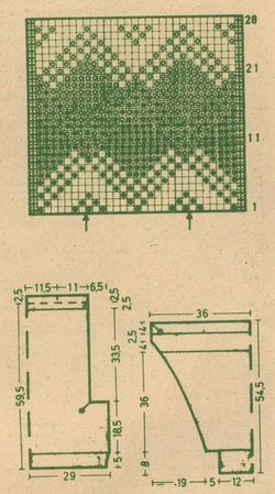 Kenar motif: 1 ters, yüz lastik. Motifli kısımları şemaya göre örün. Şemadaki 1-28.nci sıraları devamlı tekrarlayın.