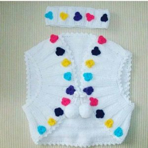 Önler Yuvarlak Çiçek Ve Ponpon Süslemeli Çocuk Cepken Nasıl Örülür. 2 .3 yaş