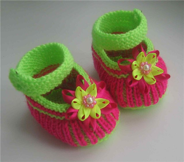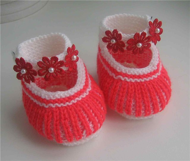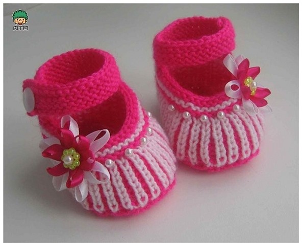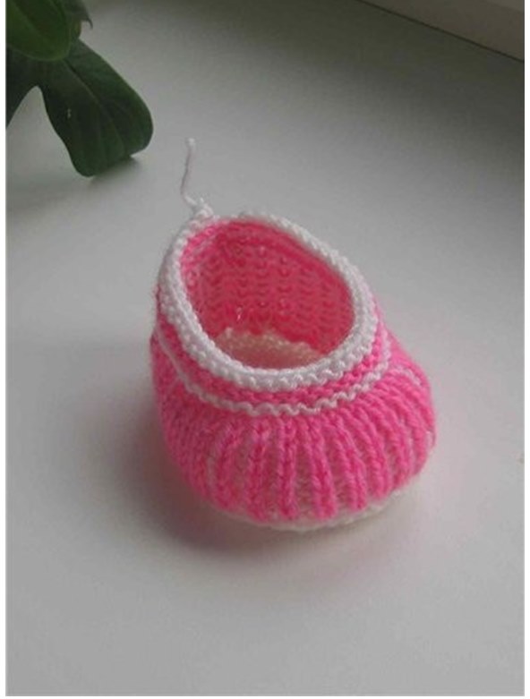 Modelin biri yeşil ve pembe olarak ve pembe ve beyaz olarak örülen bilekten bantlı çok şeker bir patik modeli üzerini çiçeklerle incilerle süsleyebilirsiniz..